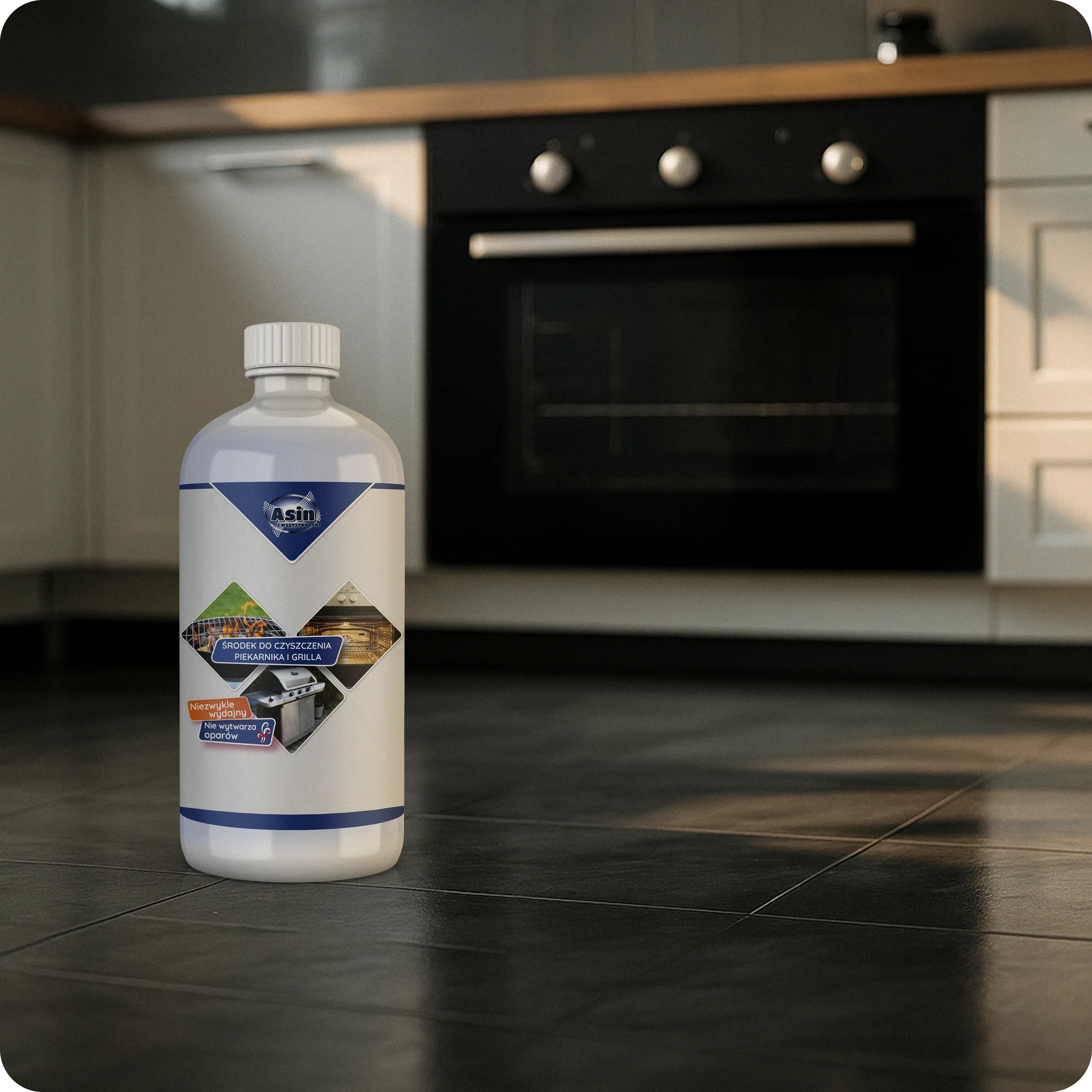 Silny i bezpieczny środek czyszczący Asin do piekarnika i grilla w butelce 750ml to niezawodne rozwiązanie w walce z tłuszczem, przypaleniami i trudnymi